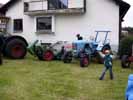 Das Dorffest 2011 war ein voller Erfolg. Das halbe Dorf war bei den Vorbereitungen aktiv. Es war geplant als Fest von Schönbrunnern für Schönbrunner, und genau das ist superschön aufgegangen. Viele Ex-Schönbrunner waren im Zuge des Dorffestes wieder zu Besuch bei Verwandten und alten Bekannten und um sich auch die sehenswerte Ausstellung über die Entwicklung unserer schönen Ortschaft anzuschauen. Es haben auch alle sehr gerne mitgeholfen, denn alles was übrigbleibt soll dann für einen guten Zweck verwendet werde, Darum haben alle, die dabei waren äusserts knapp kalkuliert oder ganz auf Gage usw verzichtet. Auch der Herr Malschinger hat wirklich Spitz auf Knopf kalkuliert. Daher ein grosses Dankeschön an alle Mitwirkenden. Der gute Zweck wird dann in Bälde bekanntgegeben. Der Vorschlag, ein derartiges Fest durchzuführen kam vom Gerhard Suttor, und das schon ein gutes Jahr vorher. Diesen Vorschlag trug er das erste Mal in der Jahreshauptversammlung der Feuerwehr 2010 vor und stiess damit auf grosse Zustimmung. Es hat sich dann fast automatisch ergeben, dass sich eine grosse Gruppe an Brunnern an der Planung und Durchführung des Festes aktiv beteiligt hat. Das erste Mal hat sich diese Gruppe am 30.10.2010 im Dorfhaus getroffen um sich gemeinsam die ersten Gedanken zu machen und sich das alles erstmal vorzustellen. Schon hier formten sich so etwas wir Untergruppen, welche sich um verschiedene Einzelpunkte des Festes dann kümmern wollten. Ab dann traf man sich in lockeren Abständen um alle anderen Beteiligten immer wieder den aktuellen Stand der jeweiligen Planungen mitzuteilen. Das Dorffest sollte aus mehreren Einzelveranstaltungen bestehen. Eine Ausstellung über die Dorfentwicklung mit möglichst einem Vortrag eines geschichtlich versierten Fachmanns sollten angegangen werden und es entsprang auch gleich der Wunsch, dass dieses Fest anders als unsere anderen Feste ablaufen sollte. Gerhard Suttor bot seinen gesamten Hof als Festplatz an. Ein Gottesdienst sollte gefeiert werden und auf vielfachen Wunsch eines Beteiligten wurde dann auch gerne die Oldtimerparade eingeplant. Das Fest mit all seinen Einzelveranstaltungen wurde von allen Besuchern begeistert aufgenommen und den Brunnern hats auch allen gefallen - was will man mehr. Das Wetter hat nicht so richtig mitgemacht, aber es hat der Stimmung keinerlei Abbruch getan. Ein dickes Lob an unseren Franz Wittmann, der sich ein Halbes Jahr mächtig ins Zeug gelegt hat und akribisch alles gesammelt und sortiert hat, unzählige Gespräche geführt hat und alles wunderschön auf 50 laufenden Metern Ausstellungsfläche im Dorfhaussaal angerichtet hat.